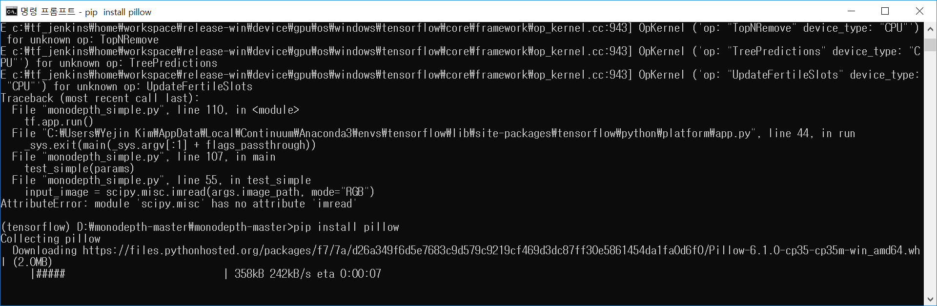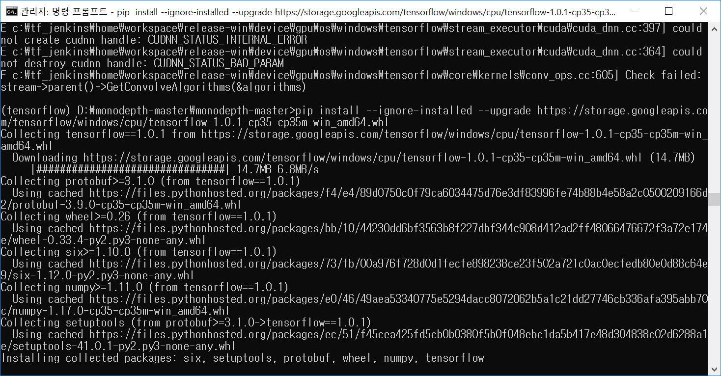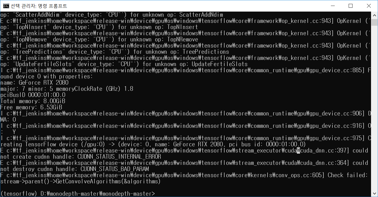 아까는 gpu관련 에러랑 cudnn에러가 많이 났는데,