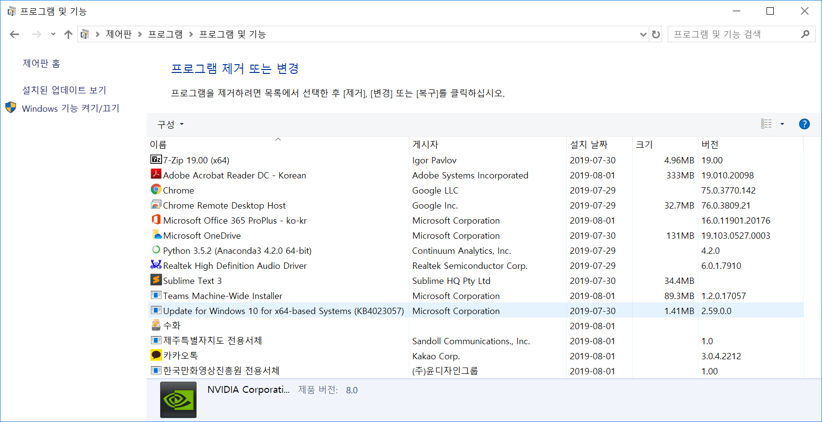 그래서 쿠다를 지우고 다시 깔아보려고 한다.