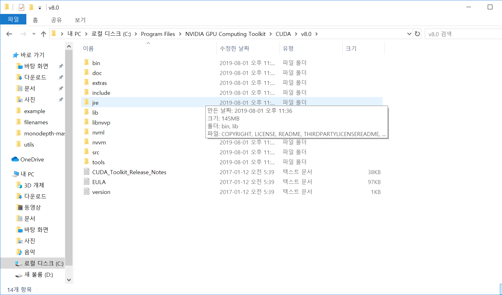 다른 블로그의 글과 비교를 해보니까 나의 cuda가 좀 이상하게 설치된 것 같다.